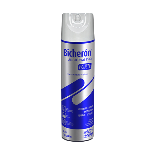 Bicherón Curabicheras Plata Forte es un producto para el control de miasis, con acción larvicida, antimicrobiana y repelente, favoreciendo la cicatrización de la heridas.
